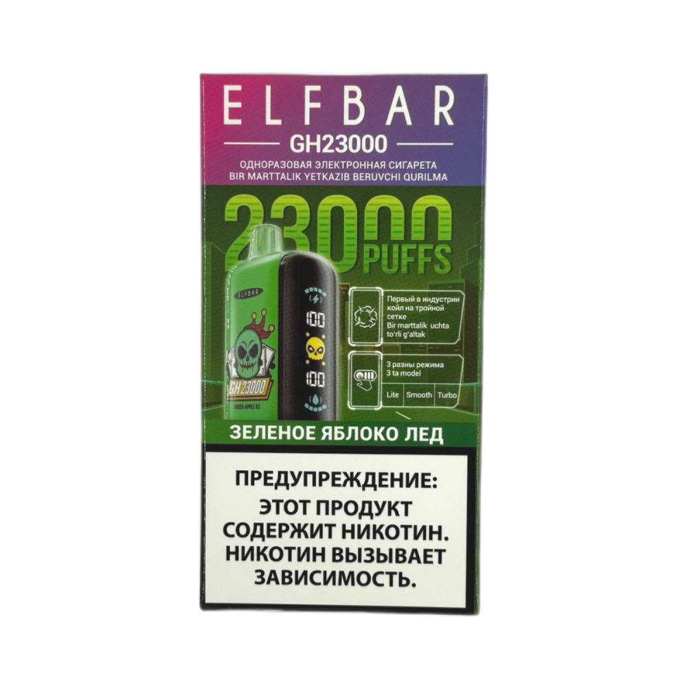 - Купить электронную сигарету ELFBAR GH 23000 Зеленое яблоко лед в магазине snusmsk — отличное решение для тех, кто ценит качественные устройства с насыщенным вкусом. Эта модель рассчитана на 23000 затяжек, обеспечивая длительное и комфортное использование без необходимости дозаправки и подзарядки. Вкус Зеленое яблоко лед сочетает свежесть сочного зеленого яблока с холодящим эффектом льда, создавая яркое и освежающее чувство при каждом затягивании. ELFBAR GH 23000 отличается компактным и удобным дизайном, что делает устройство практичным для ежедневного применения и комфортного ношения в любом месте. Электронная сигарета подходит как для новичков, так и для опытных пользователей, благодаря простоте в эксплуатации и стабильности работы. Магазин snusmsk предлагает оригинальные устройства с гарантией качества и быстрой доставкой по всей России. Приобретая ELFBAR GH 23000 Зеленое яблоко лед в snusmsk, вы получаете надежное устройство с насыщенным и свежим вкусом, которое не оставляет неприятного запаха. snusmsk обеспечивает выгодные цены и квалифицированное обслуживание, делая процесс покупки удобным и безопасным. Благодаря передовым технологиям, электронная сигарета предоставляет стабильное парение и максимальное удовольствие на протяжении всего срока службы. Покупка в магазине snusmsk гарантирует подлинность и высокое качество каждого устройства. ELFBAR GH 23000 Зеленое яблоко лед станет идеальным выбором для тех, кто хочет насладиться сочным фруктовым вкусом с охлаждающим эффектом.